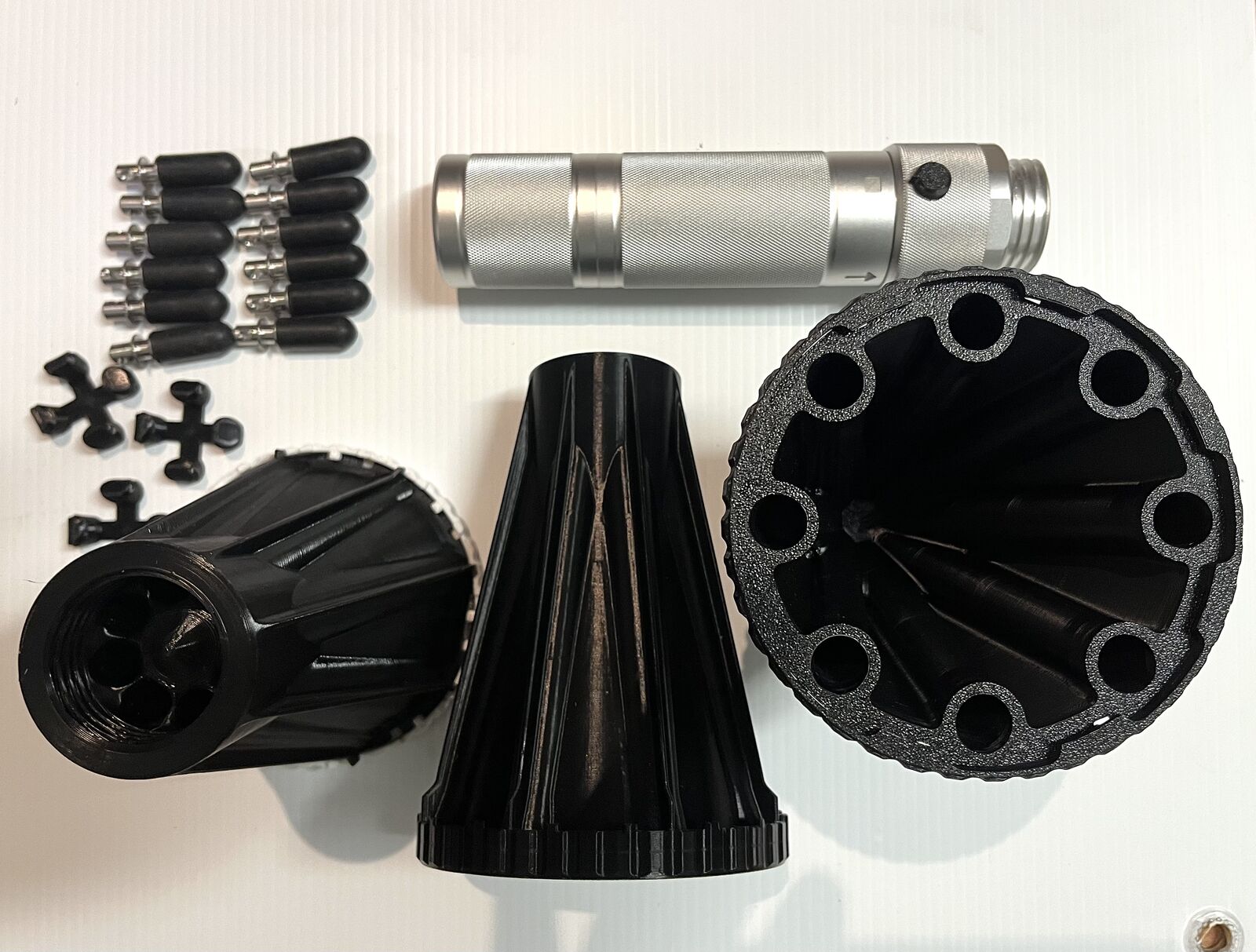 • The Projectiles: The net is packed into a canister. Attached to the corners of the net are weighted "slugs" or brass weights. When fired, these weights pull the net open into a wide square or hexagon mid-air.